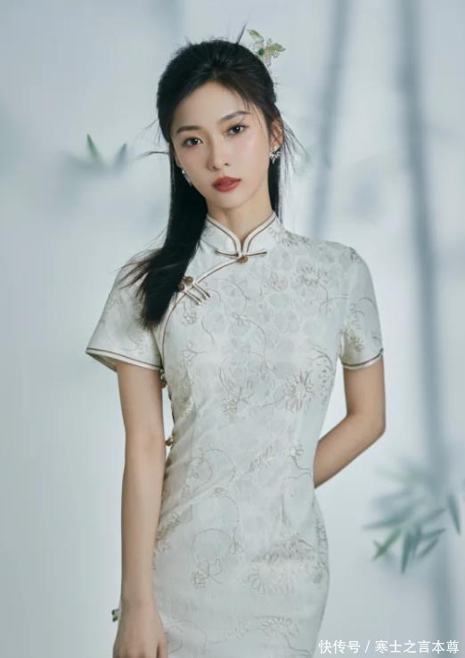 但戏外的赵诗意可没有那么苍白柔弱,相反,她活力四射,充满了朝气。 脸蛋紧致饱满,妆容浓而不艳,鼻梁高挺,五官立体,一身旗袍勾勒出姣好的身段,仿佛是从民国走出来的贵气千金,而眉宇间的英气又透着坚韧不屈的劲儿。